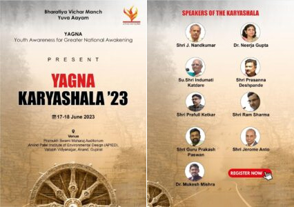 Register for One of the Most Impactful Intellectual Youth Workshop in Gujarat. YAGNA Karyashala 23 Brings with New Ideas for the Nation Building, Narrative Building, Social Media Mapping and Networking, Globalisation, Evangelical Forces and Hindutva in Present & Future Context. With 9 National Speakers with vast Experience in the Intellectual Field & Ground Realities, YAGNA invites Young Minds to join this Workshop for Building a New India. The Registration Fee Includes Meals and Accommodation with proper sanitation.